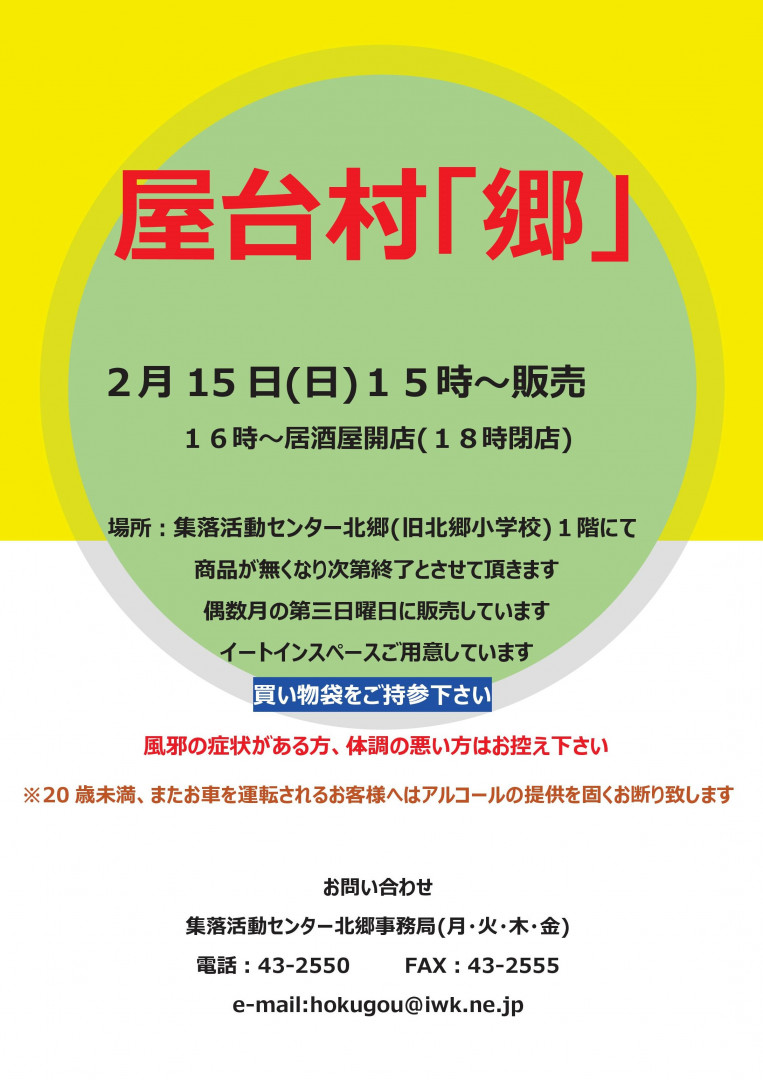 集落活動センター北郷では偶数月の第3日曜日に「小さな屋台村~ ... 続きを読む