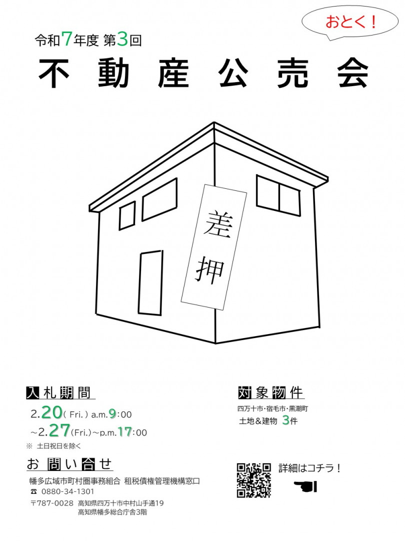 幡多管内税徴収部署による不動産公売会を開催いたします。
