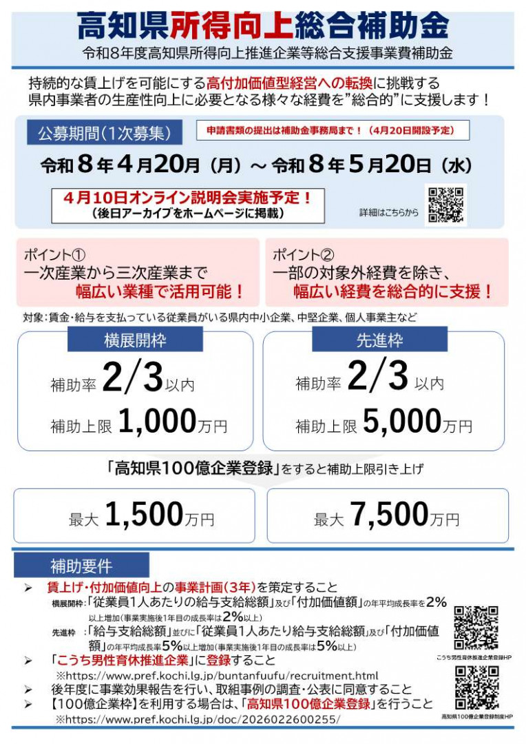 【新設補助金】高知県所得向上総合補助金について