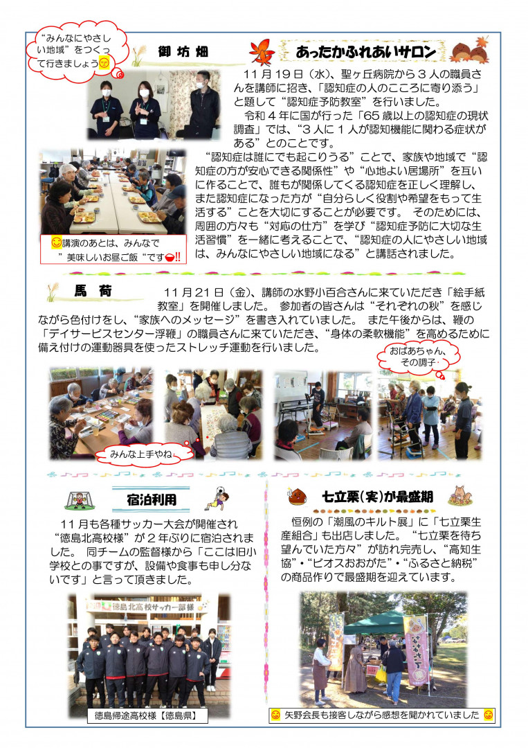 平成28年4月開所 〒789-1902 黒潮町蜷川660-1 電話:0880-44-2010 FAX :0880-44-2011 |