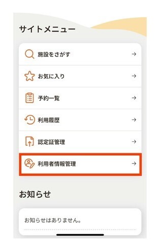 2.メニューの一覧が表示されます。「利用者情報管理(画像の赤枠)」を選択してください。