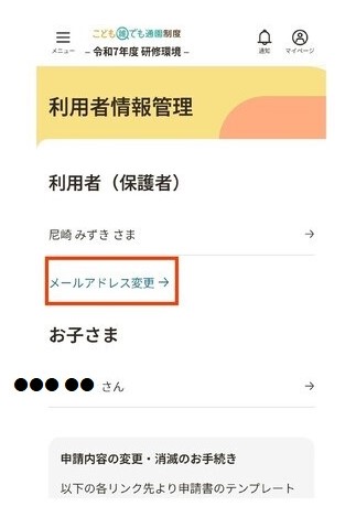 【お子さま情報の登録・変更画面への入り方その2】 |