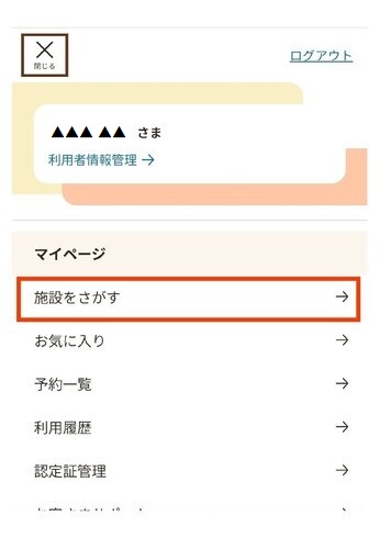 【施設をさがす画面への入り方2】
