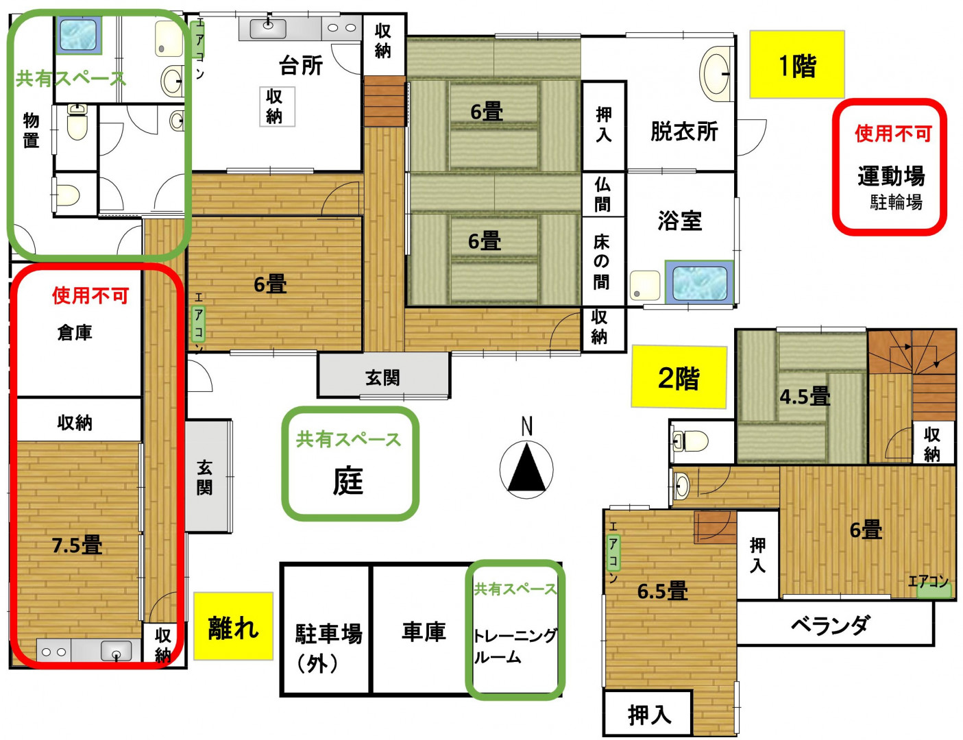 ・離れと倉庫1つ、運動場は、所有者が使用します。