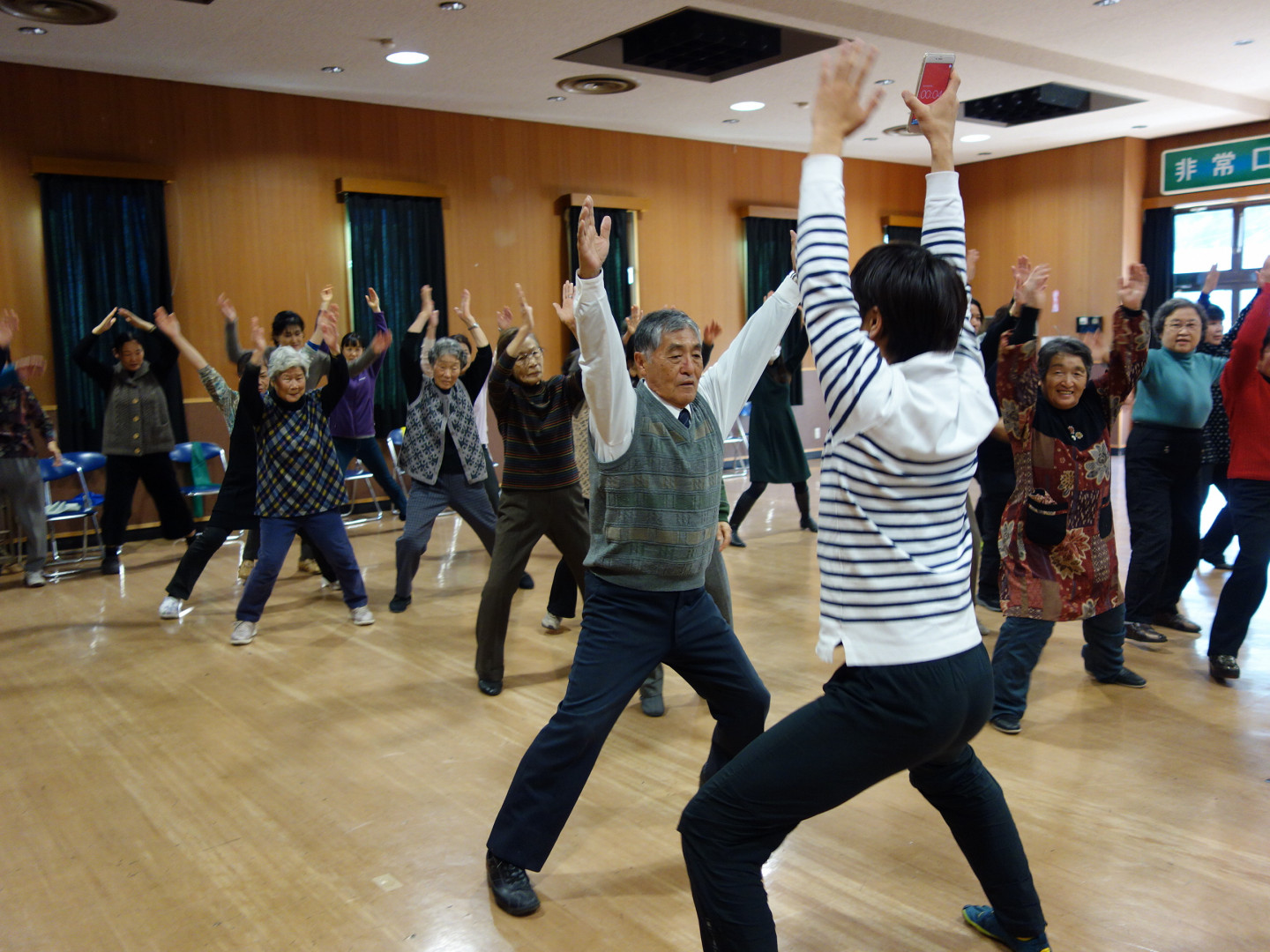 毎週火曜日の午前中は、健康体操、介護予防を強化しています。「住み慣れた地域で健康に笑って生活できる」ことを目標に取組みをしています。