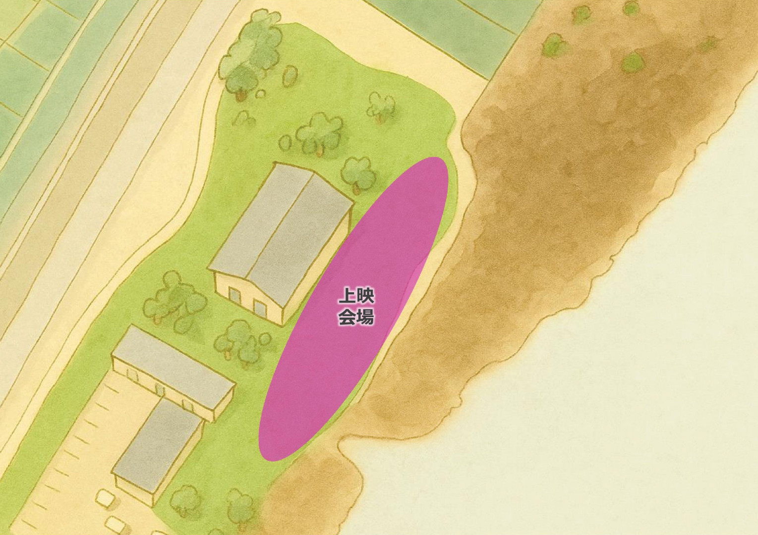②自然の中で楽しむイベントのため、映画館のような鑑賞席はありません。