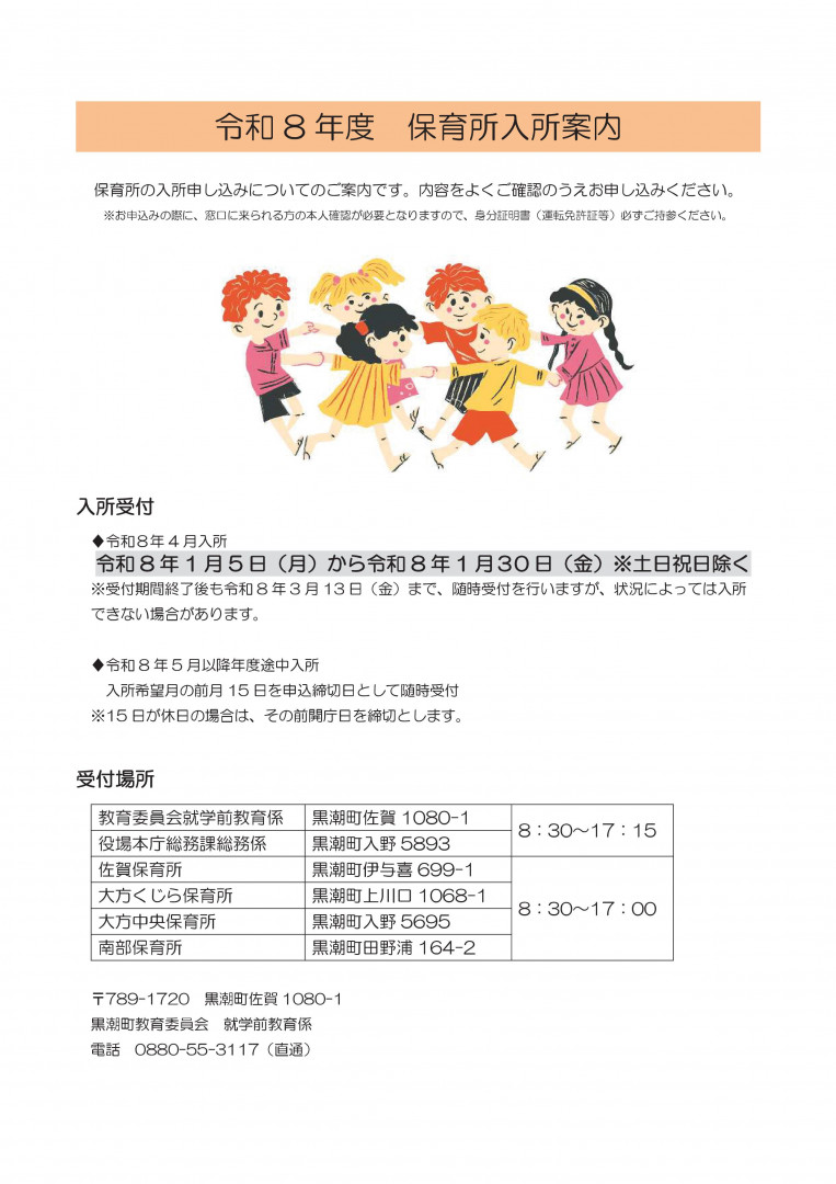 令和8年度の町内保育所への入所申し込みの受付を開始します。 ... 続きを読む