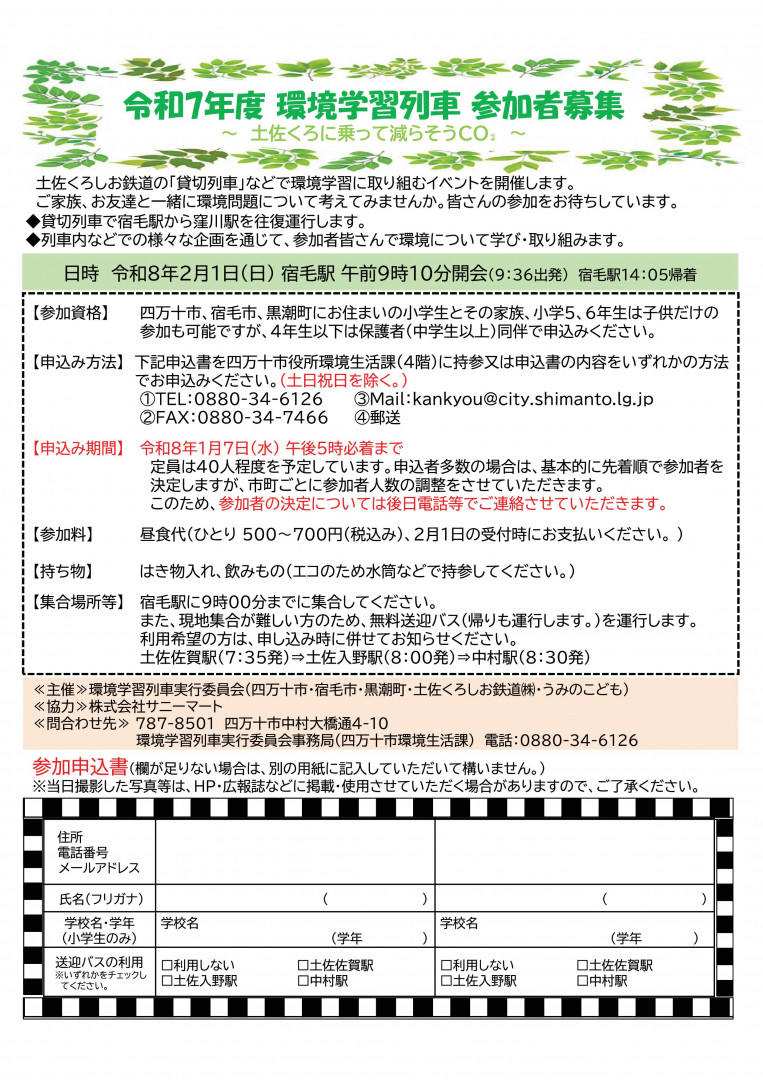 「令和7年度環境学習列車」のご案内