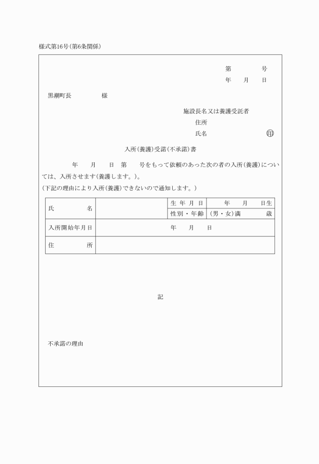 第5条 施行規則第1条の7の規定による申出は、様式第11号の養護受託申出書によらなければならない。