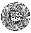 16弁のひまわり草の花の中心部に秤一台を配する。