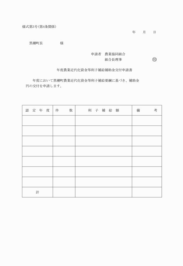 (1) 農業近代化資金等利子補給補助金交付申請書(様式第3号)
