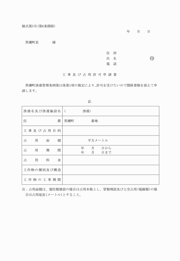 ○黒潮町漁港管理条例施行規則