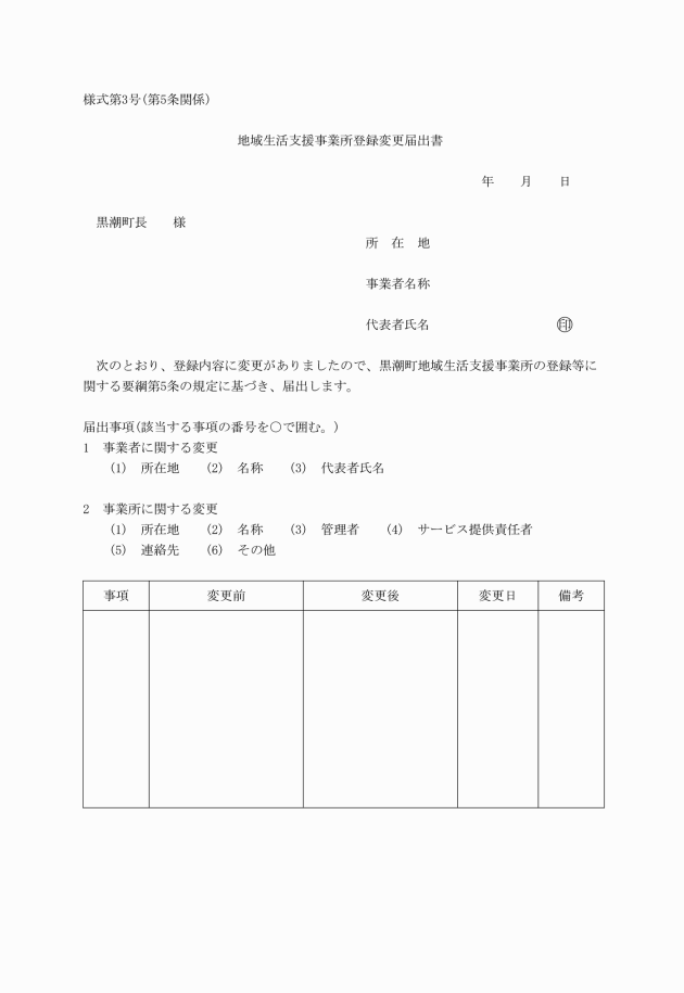 ○黒潮町地域生活支援事業所の登録等に関する要綱