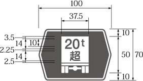 (6) 自動車専用道路以外の道路に設置する「駐車場」、「総重量限度緩和指定道路」、「高さ限度緩和指定道路」及び「まわり道」を表示する案内標識(「まわり道」を表示するものにあっては120―Aに限る。)並びに警戒標識については、道路の形状又は交通の状況により特別の必要がある場合にあっては、図示の寸法((5)の規定により横寸法を拡大する場合にあっては、当該拡大後の図示の寸法)の1.3倍、1.6倍又は2倍に、それぞれ拡大することができる。