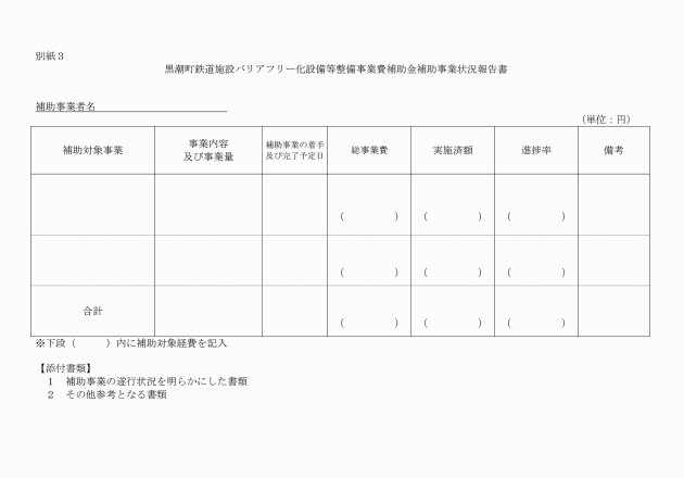 2 補助事業が年度内に完了しない場合は、黒潮町鉄道施設バリアフリー化設備等整備事業費補助金補助事業年度終了実績報告書(様式第7号。以下「年度終了実績報告書」という。)を町長に提出しなければならない。