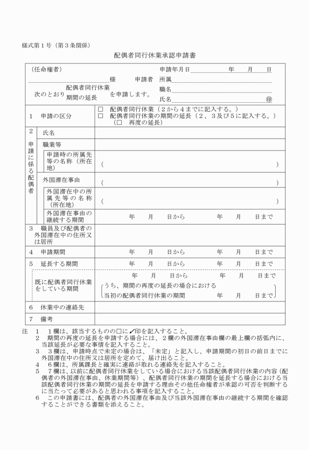 (1) 条例第2条の規定により配偶者同行休業を承認する場合