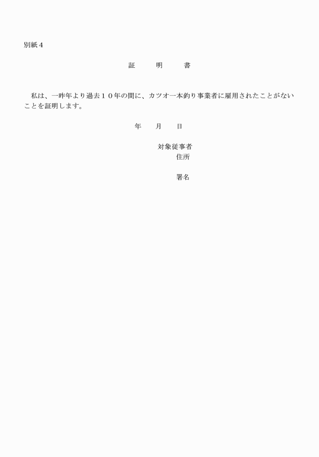(3) 補助金申請年の前々年より過去10年以内に、カツオ一本釣り事業者に雇用されたことがない者