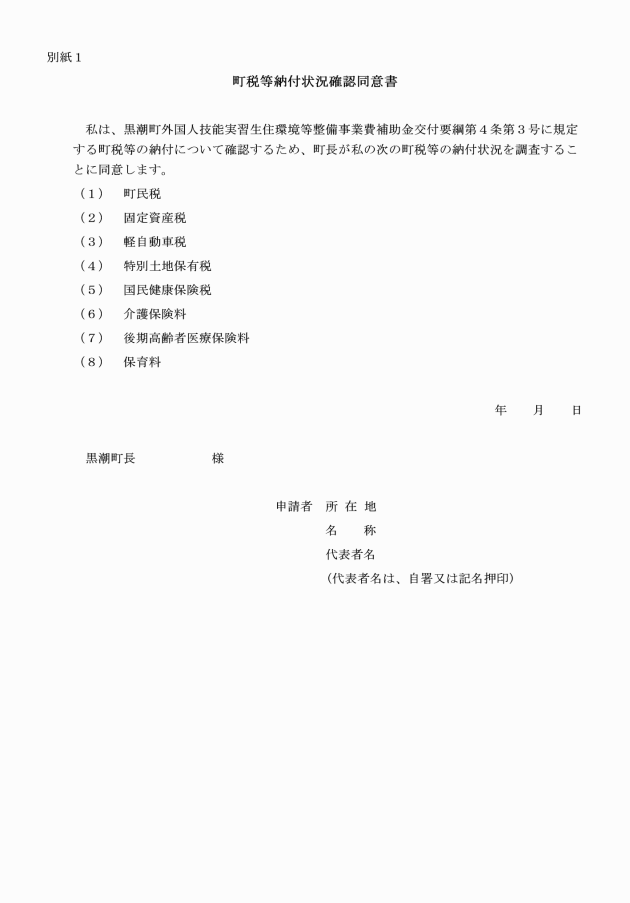 (1) 町税等納付状況確認同意書