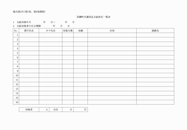 第10条 支給対象者が、黒潮町介護用品支給決定通知書により通知を受けた介護用品の注文期限までに注文が行われなかった場合は、介護用品の支給を受けることを辞退したものとみなす。