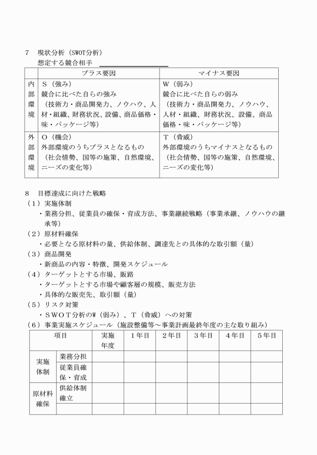 1 | 事業計画書 | (1) 必ず作成してください。 (2) 事業の実施スケジュール等の資料を適宜、添付してください。 (3) 既存事業の収支が赤字の場合は、その要因と改善策・見通し等について、事業計画書に記載するか、別途資料を作成して添付してください。 (4) 採算が合うまでに時間を要する事業は、短期の資金計画表等を作成して添付してください。 |