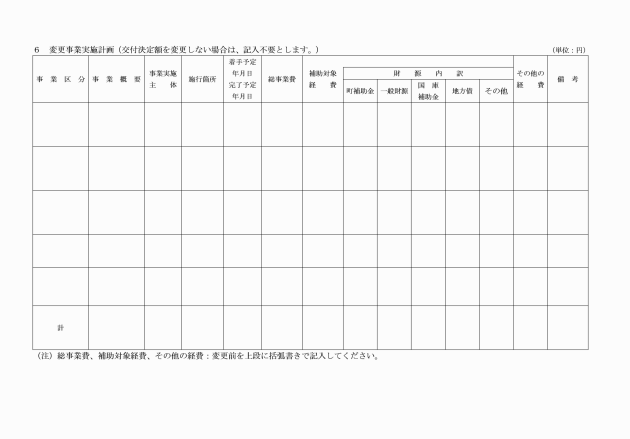 (6) 補助事業の重要な部分に関する変更(必要に応じ事前に町長に協議すること。)